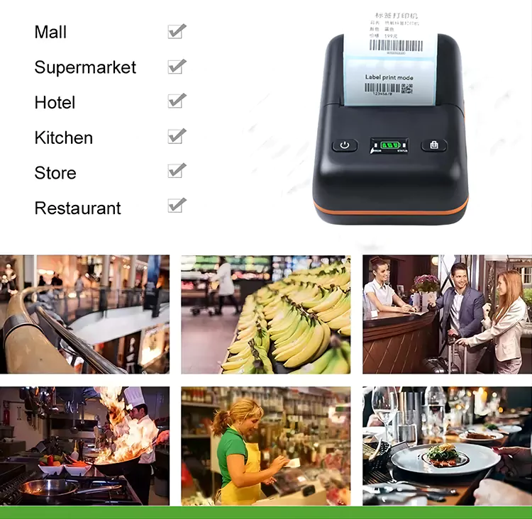 Портативний термопринтер етикеток розміром 58 мм сумісний з різними інтелектуальними пристроями, такими як Android, iOS і Windows. Він має можливість вставляти зображення, логотипи, таблиці, рамки, підкреслення та спеціальні символи в декілька бібліотек шаблонів для міток, цінників, іменних ярликів і діаграм. Його можна вільно та гнучко налаштовувати та редагувати, він дуже зручний та зручний для користувача.