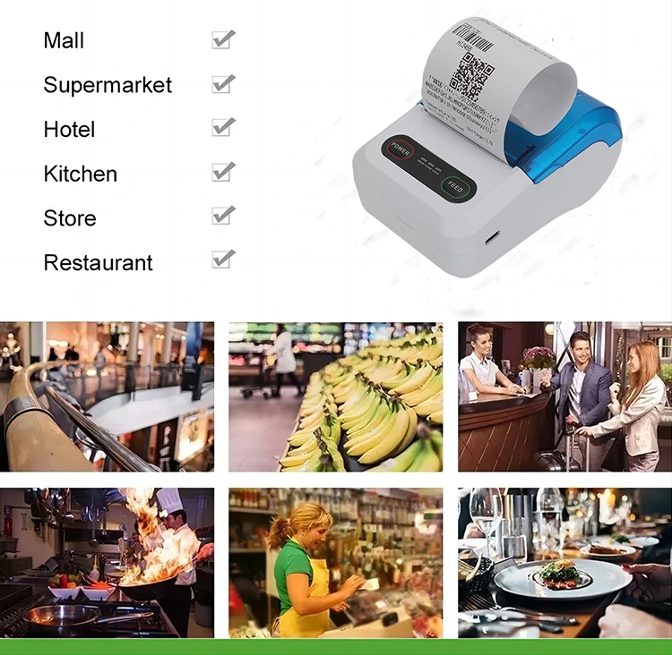 Термічні бездротові безчорнильні принтери Bluetooth стають все більш популярними та широко використовуються в багатьох галузях, таких як роздрібна торгівля, громадське харчування, логістика та охорона здоров’я. Роздрібна торгівля може використовувати його для швидкого друку чеків. У сфері громадського харчування він може друкувати замовлення миттєво. У галузі логістики він може друкувати етикетки для експрес-доставки. У медичній промисловості він може друкувати медичні записи та рецепти. Усі ці прикладні сценарії демонструють високу ефективність і практичність термопринтерів Bluetooth.